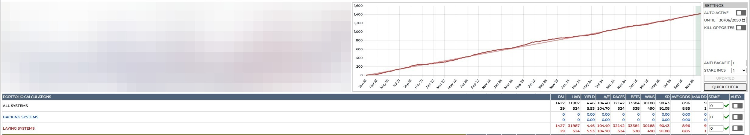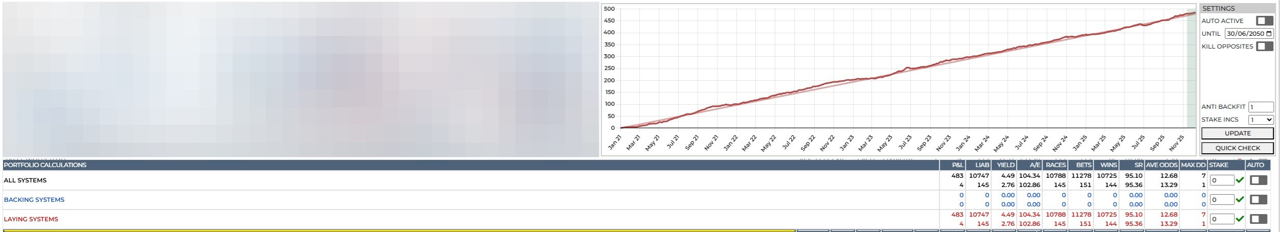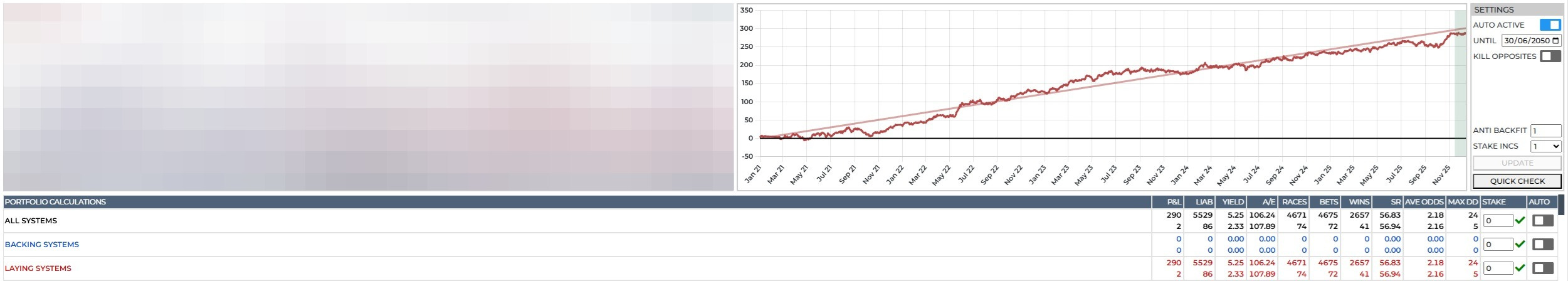 This system offers very steady, lower - risk fixed liability laying with a consistently high strike rate.