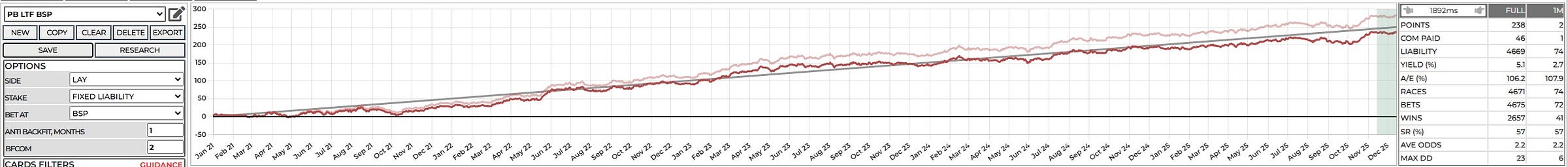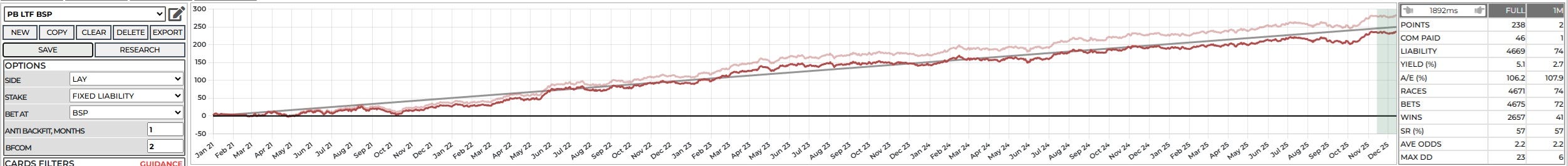 PB LTA, a lay the favourite fixed profit MTP & fixed liability BSP betting system.