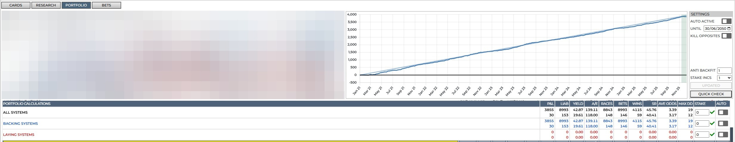 This is a simple and focused lay betting system included based on its consistency, value, and strong performance from race data to live bet testing.